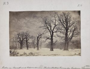 Kaum später als die überhaupt ersten visuellen Fixierungen der Ivenacker Eichen entstand deren erste fotografische Aufnahme. Ohne weitere Zu- und Einordnung veröffentlichte Friedrich Schlie sie 1902 als „die berühmten uralten Eichen“, die schon zur Zeit der Gründung des Klosters Ivenack „sehr stattliche Bäume gewesen“ sein müssen, in seinen „Kunst- und Geschichtsdenkmälern“. Erst sehr viel später erfolgte eine Datierung der Fotografie auf „um 1880“, wobei das Foto tatsächlich mindestens ein halbes Dutzend Jahre früher entstand. Es gehört nämlich in das – im Übrigen von den Ivenacker Grafen von Plessen protegierte – „Photographische Album von Mecklenburg“ des Verlages A. Mencke & Co. aus Wandsbek, das ab etwa 1867 in mehreren sogenannten Lieferungen von Einzelblättern erschien. Die Aufnahmen dafür entstanden zwischen 1865 und 1868, jedoch nicht später als 1874.